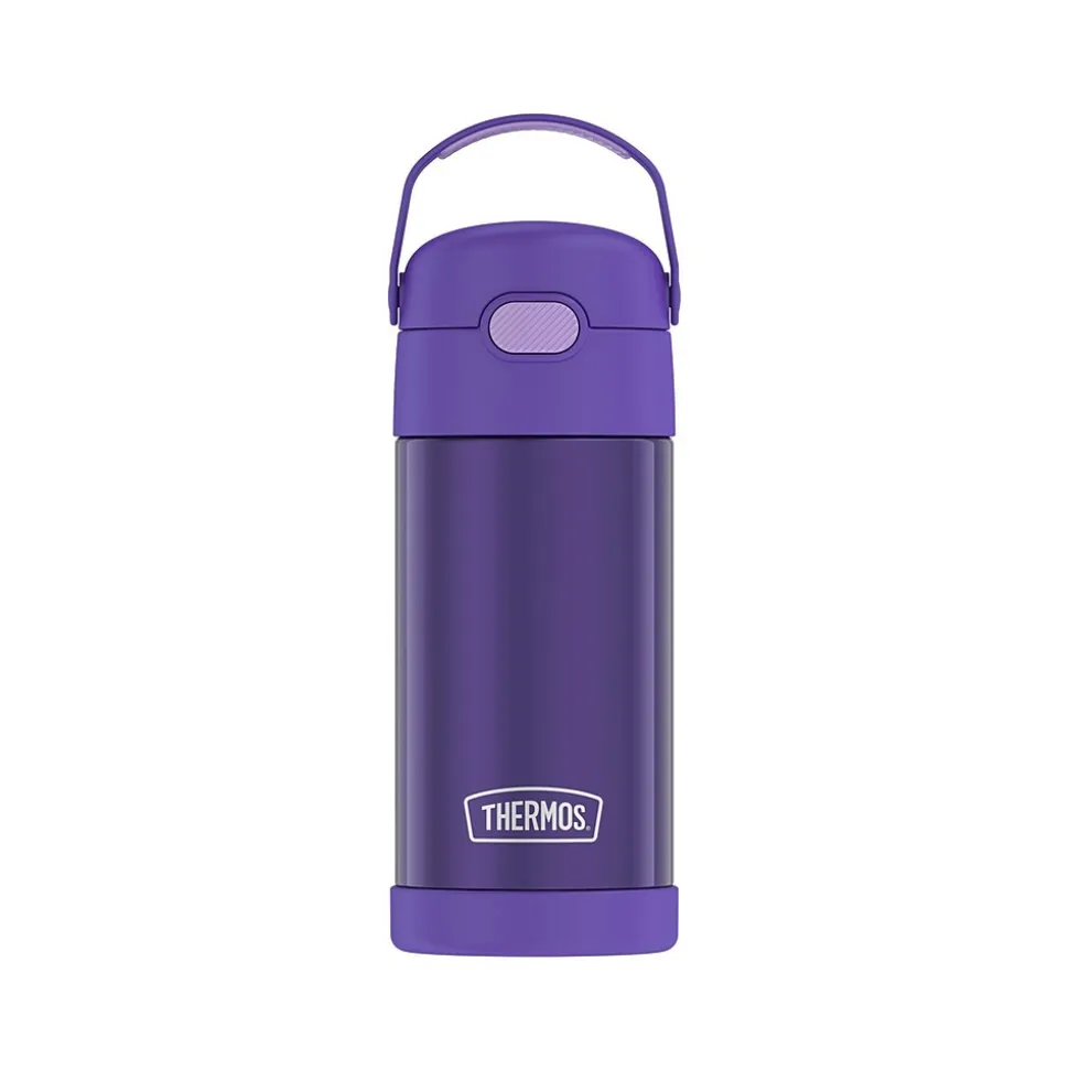 The 12 oz. FUNtainer water bottle from Thermos is vacuum-insulated to keep drinks cold for up to 12 hours (not for hot liquids). The FUNtainer water bottle is lightweight and compact, featuring a push-button lid so it’s easy to carry and open. The integrated carry handle features a soft-touch grip. To clean, you can pop your FUNtainer bottle in the dishwasher; however, washing by hand is recommended.