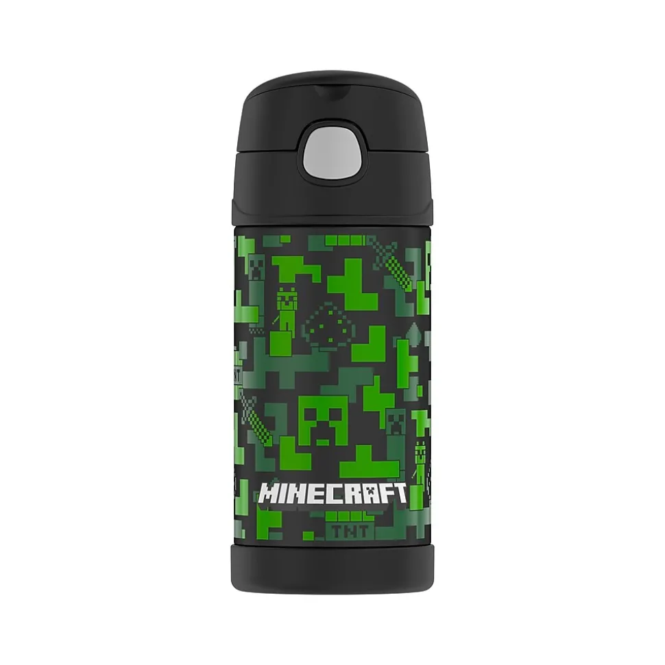 - Made of stainless steel in navy blue, Minecraft, or Pokemon designs
