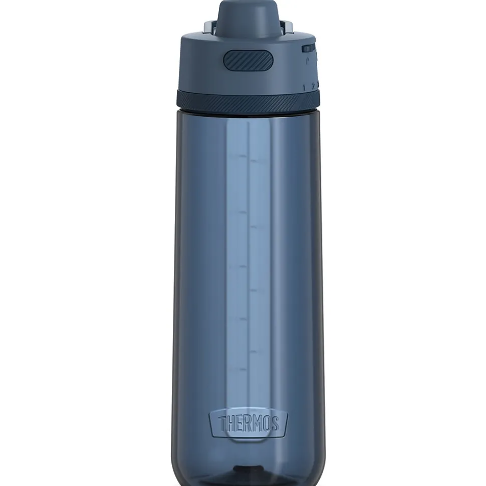The Thermos 24-Oz. Guardian Vacuum-Insulated Hard Plastic Hydration Bottle keeps you in the game. Equipped with a hygienic covered spout, locking cap, carry handle, and rotating hydration meter, this versatile bottle has all the features you need. Made with durable, dishwasher safe Triton from Eastman, this Lake Blue hydration bottle is easy to clean and easy to use.