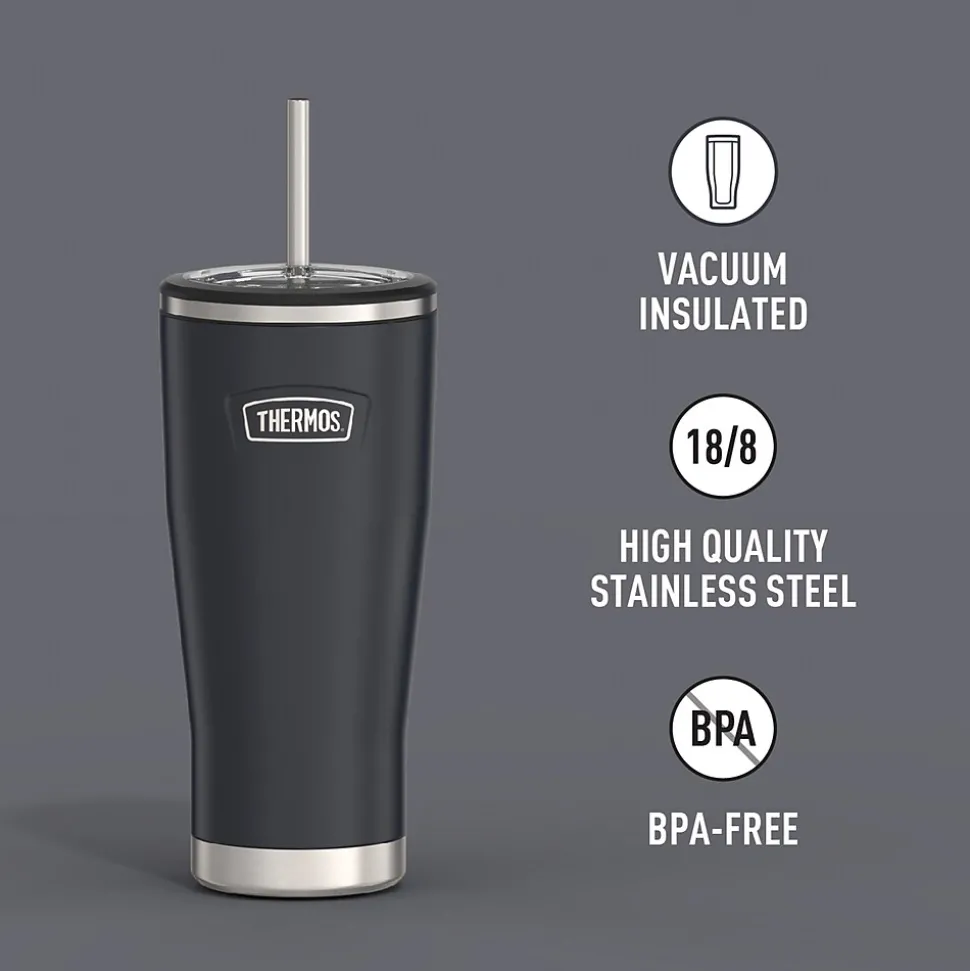 Starts cold. Stays cold. The Icon™ 24-Oz. Stainless Steel Cold Tumbler with Straw from Thermos® helps you stay hydrated to take on the day. It comes equipped with a stainless steel straw to keep up with whatever your day has in store. From the nonslip Griptec™ base to superior vacuum insulation and durable True-Coat™ finishes, the Icon™ Series by Thermos® is an ideal tumbler for everyday use. It’s dishwasher safe, but don’t use with hot liquids.