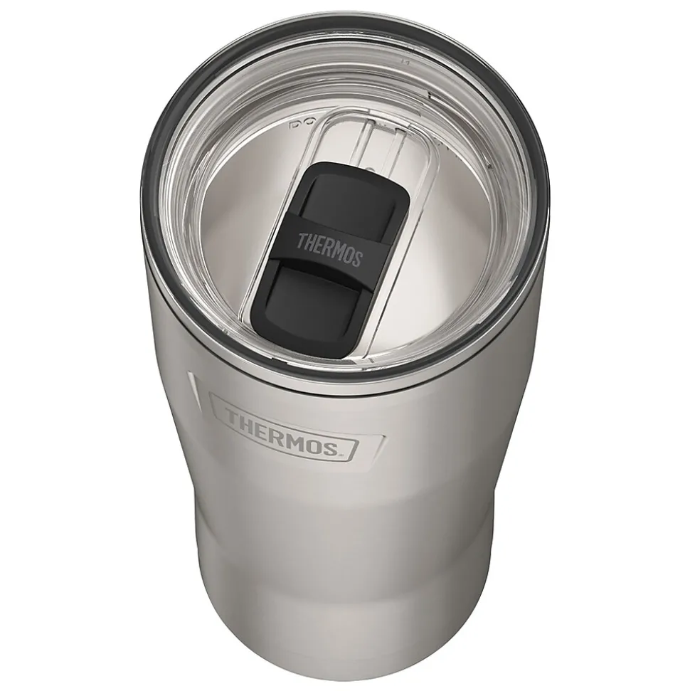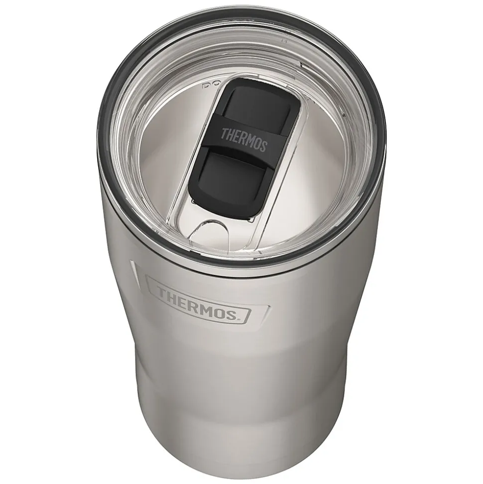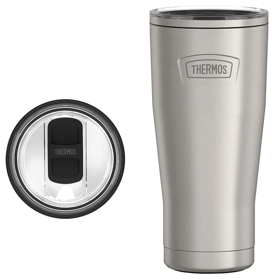 When you need your coffee hot, or your water cold, look no further than the Icon™ 24-Oz. Stainless Steel Tumbler with Slide Lock Lid from Thermos®. From the Thermos™ vacuum insulation technology, to the Griptec™ nonslip base, this tumbler is truly iconic. The slide-lock lid is straw compatible, so if you’re in the mood for an iced coffee or smoothie, you’re covered! It can be used for hot or cold liquids. Use straw for cold liquids only (straw not included). The tumbler is dishwasher safe.