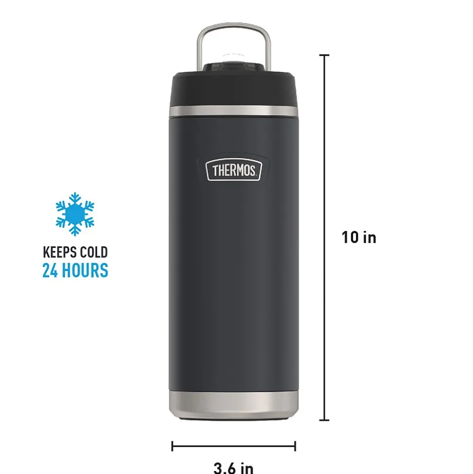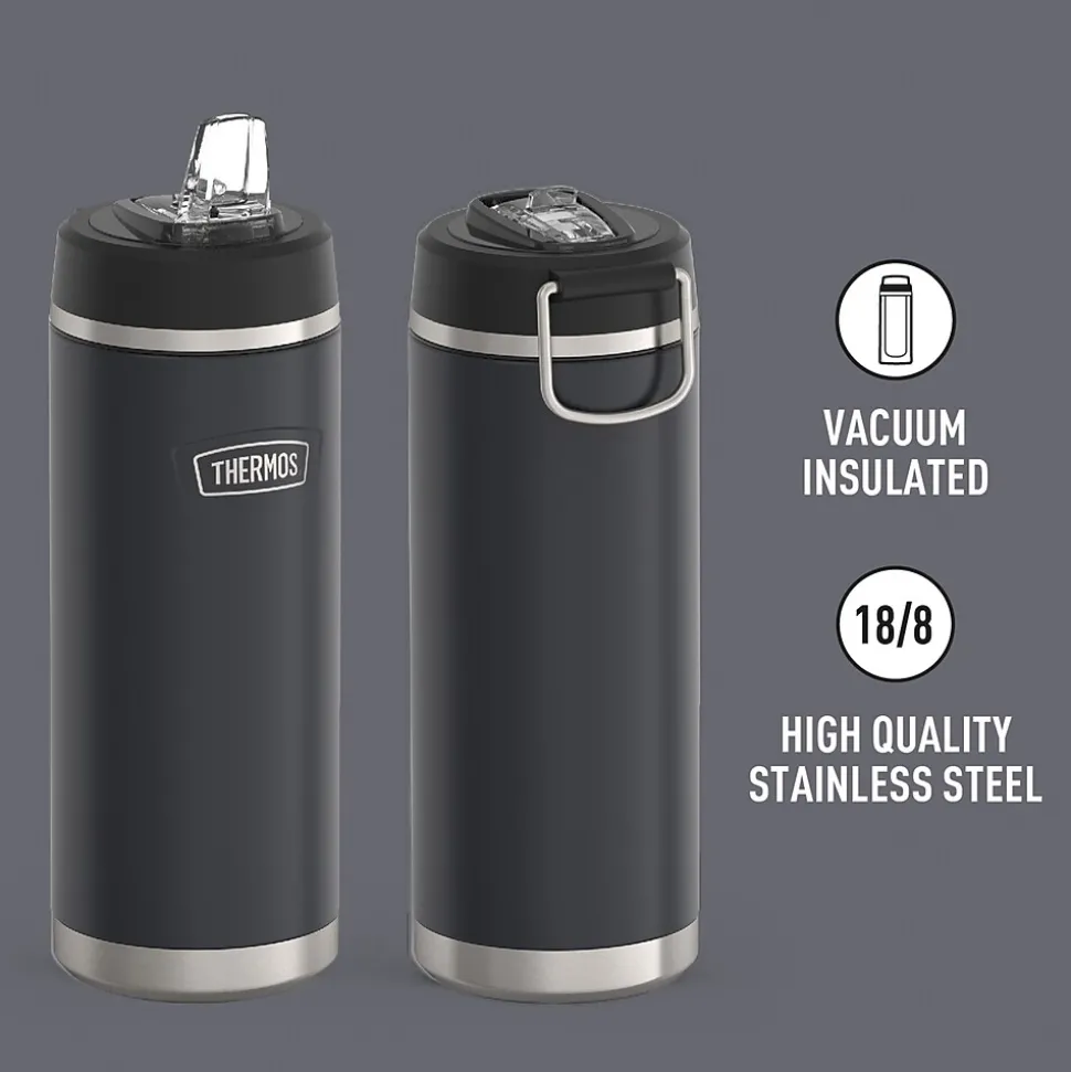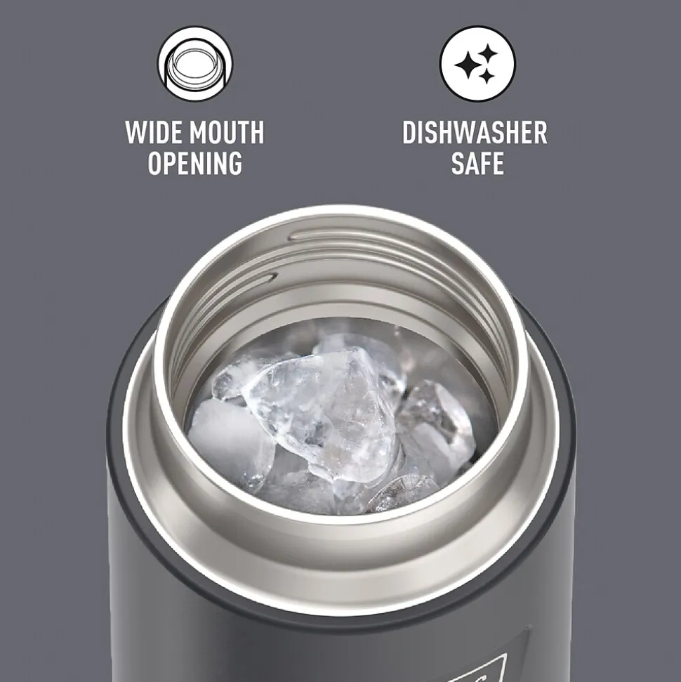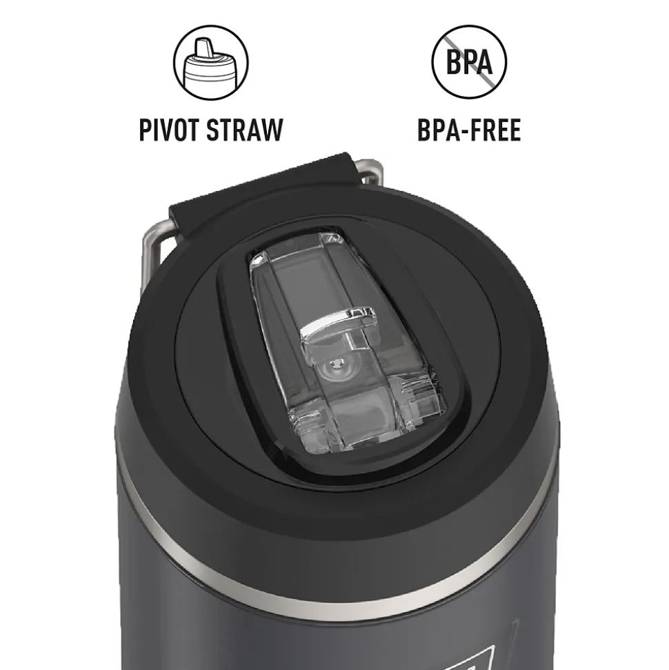 Starts cold. Stays cold. The Icon™ 32-Oz. Stainless Steel Water Bottle from Thermos® keeps you hydrated to take on the day. From the Griptec™ base to superior vacuum insulation and durable True-Coat™ finish, the bottle is ideal for everyday use. It’s also equipped with a durable pivot straw made with Tritan™ from Eastman® and a wide-mouth opening to keep up with your busy day. No detail has been left behind. The bottle is not for use with hot liquids. It is dishwasher safe.