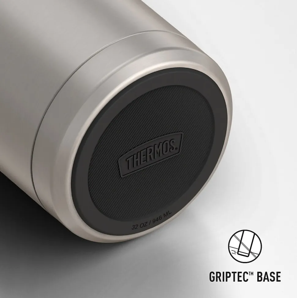 Starts cold. Stays cold. The Icon™ 32-Oz. Stainless Steel Water Bottle from Thermos® keeps you hydrated to take on the day. From the Griptec™ base to superior vacuum insulation and durable True-Coat™ finish, the bottle is ideal for everyday use. It’s also equipped with a durable pivot straw made with Tritan™ from Eastman® and a wide-mouth opening to keep up with your busy day. No detail has been left behind. The bottle is not for use with hot liquids. It is dishwasher safe.