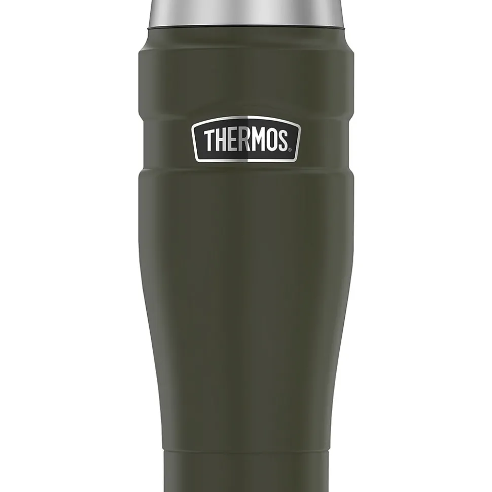 An ideal choice for on the go, the Thermos 16 Oz. Stainless King Stainless Steel Travel Tumbler is built to last and loaded with features to make for a more enjoyable drinking experience. Thermos vacuum insulation technology virtually eliminates temperature change within the beverage container by creating an airless space between 2 stainless steel walls. The result is a superior insulated container you can depend on to keep your beverages hotter, colder, fresher, longer. This travel tumbler keeps beverages hot for 7 hours or cold for 18, making it a great choice for long days out and about or in the office. Constructed with double wall stainless steel, this 16 oz. travel tumbler is durable, yet its sleek design is both eye-catching and functional.
