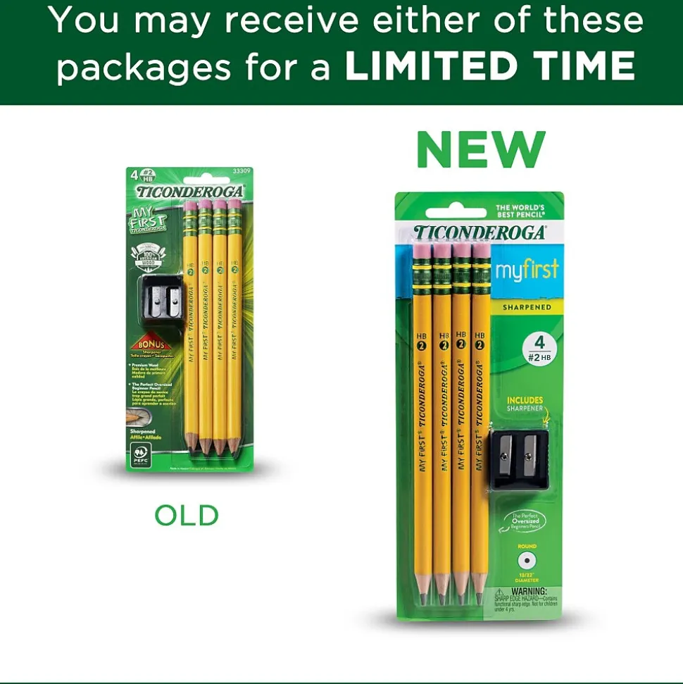 Ticonderoga My First Pre-Sharpened Wooden Pencil, 1.3mm, #2 Medium Lead, 4/Pack (X33309X)