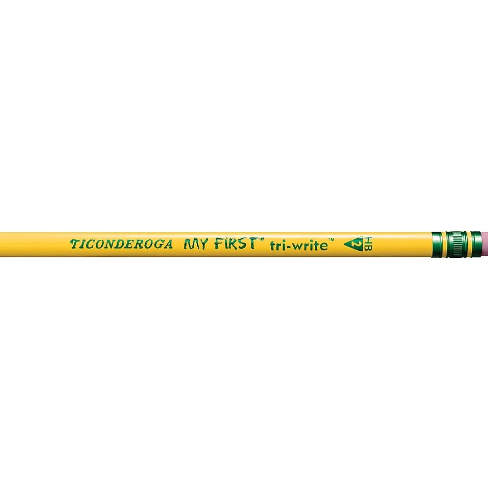 Encourage correct finger positioning in young students with this 36-count box of beginner pencils. The nontoxic materials are ideal for classroom use. These Ticonderoga beginner pencils have a triangular ergonomic shape to let children develop a proper grasp for writing.