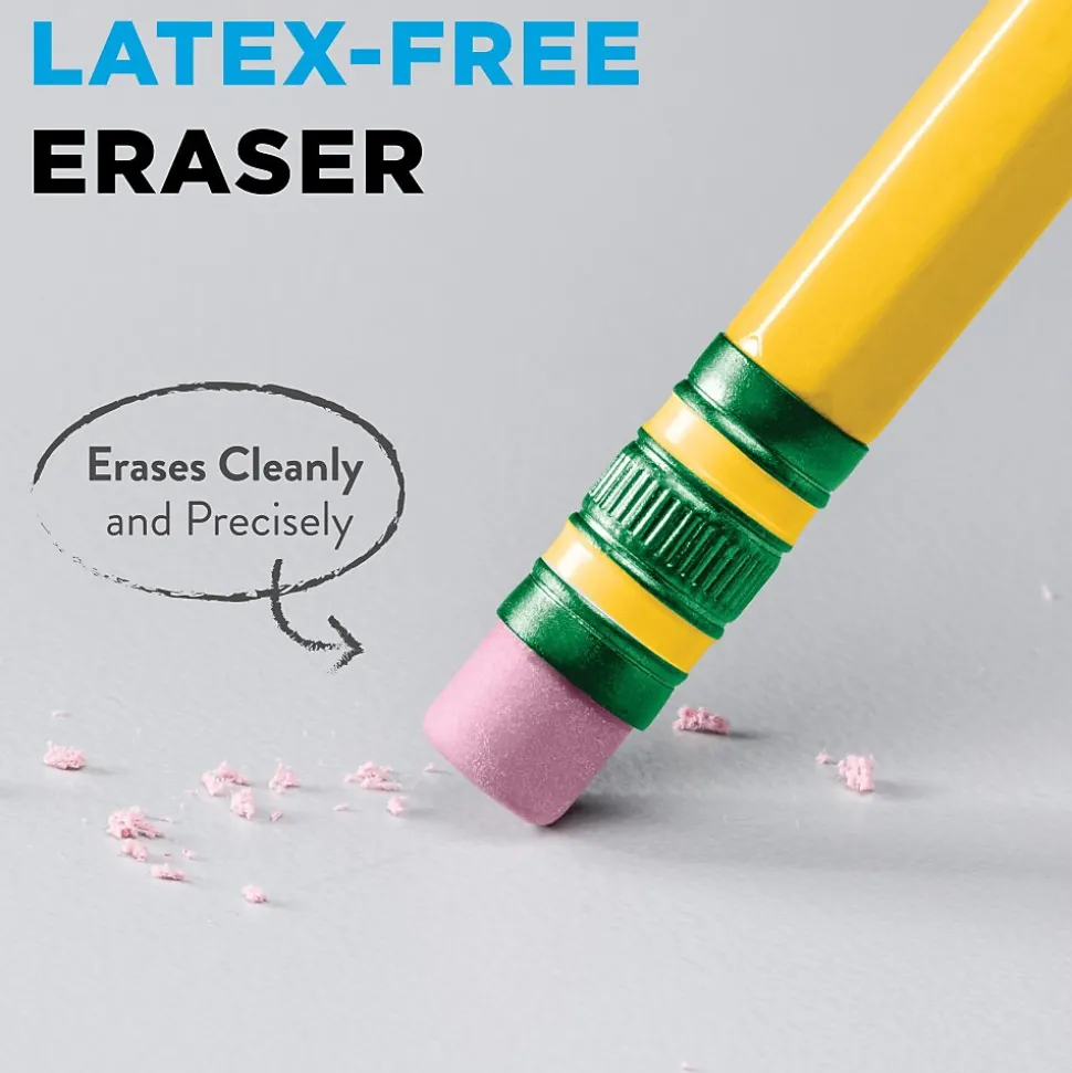Write papers with these wood-cased pencils. Each pencil has a latex-free eraser that cleans mistakes without making a mess, while the premium wood case allows for a comfortable grip and easy sharpening. These Ticonderoga yellow-barrel wood-cased pencils are PMA-certified nontoxic.
