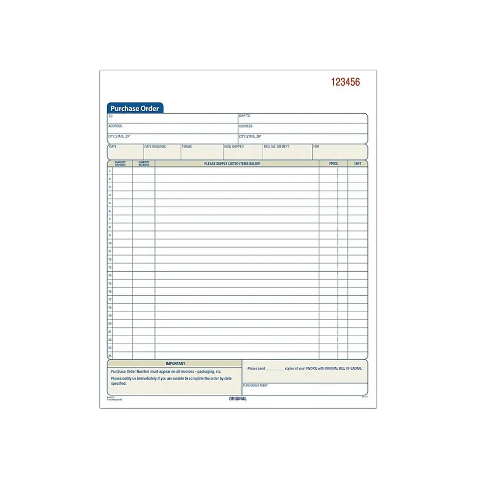 Create permanent records for businesses with these purchase order books. Each book comes with 50 sets of triplicate purchase orders, so you can submit a copy to vendors, one to the accounting department and keep one for records. Carefully document line items and prices with these Tops heavy duty forms that are standard copy paper size.