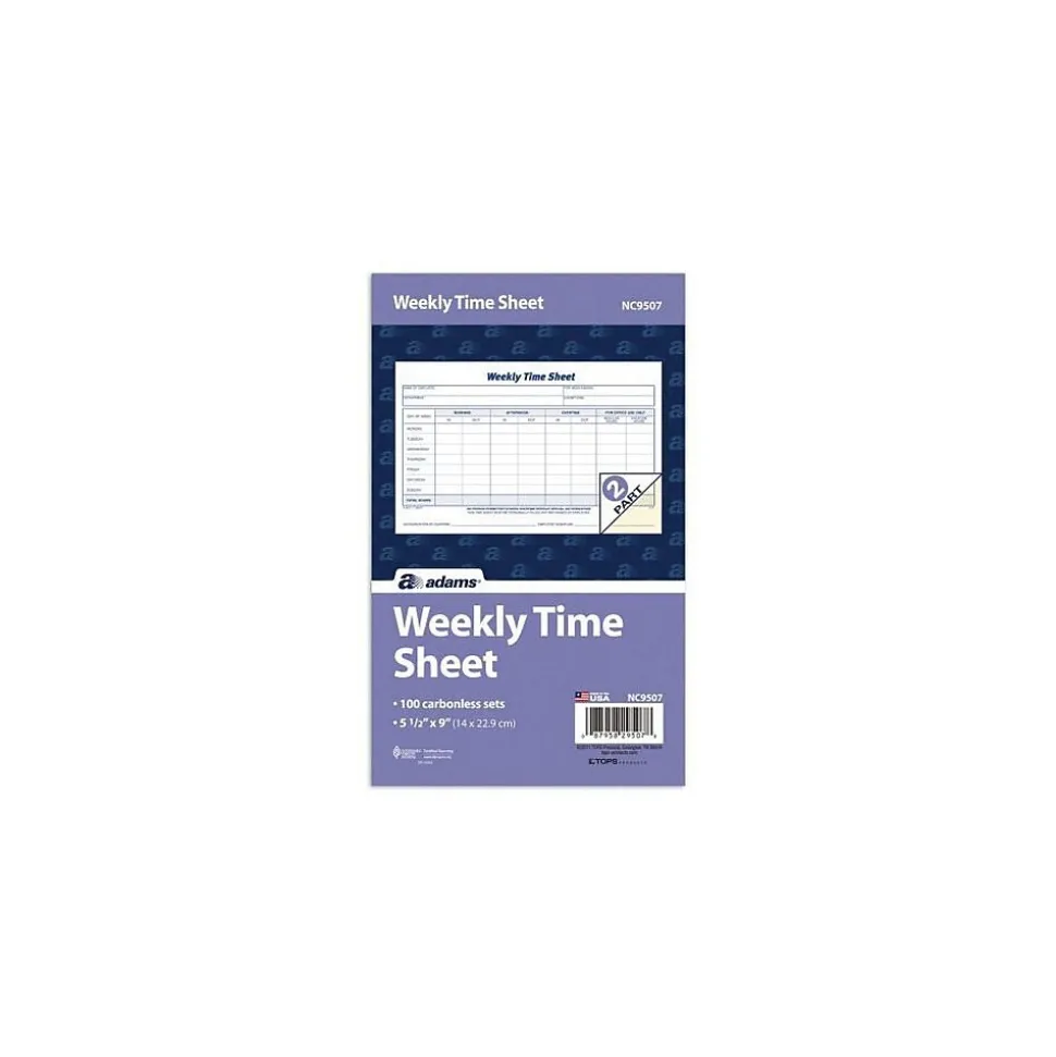 The TOPS™ NC9507 2-part carbonless weekly time sheet provides space for regular morning and afternoon hours as well as overtime.