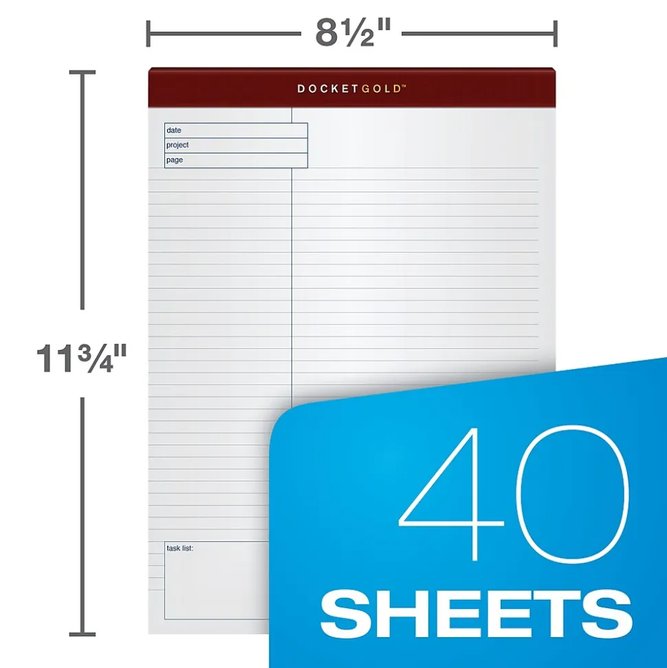 TOPS Docket Gold Notepads, 8.5" x 11.75", Quad, White, 40 Sheets/Pad, 4 Pads/Pack (TOP 77102)