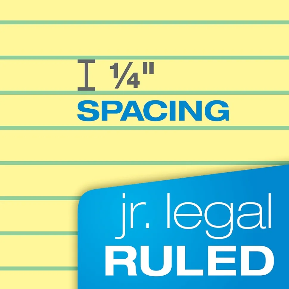 Take your notes on the go with these narrow-ruled notepads. Made with a durable chipboard back, these notepads provide sturdy support, so you can easily jot down thoughts, reminders, and to-dos as you go about your day to day tasks. These TOPS Docket rigid-back yellow notepads have 50 perforated sheets of paper, so you can quickly remove pages without causing damage.