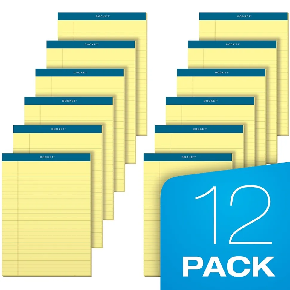 TOPS Docket Notepads, 8.5″ x 11.75″, Wide Ruled, Canary, 50 Sheets/Pad, 12 Pads/Pack (TOP63400)