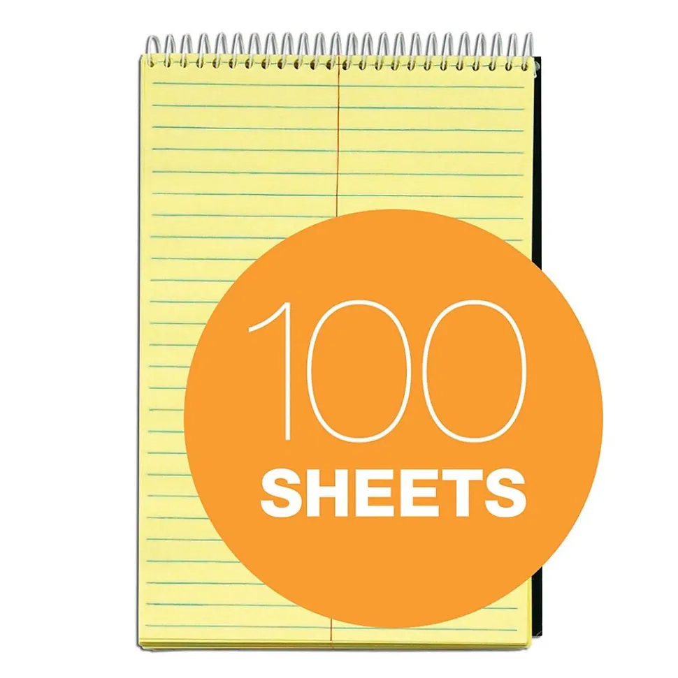 The classic flip-top format long preferred by stenographers and reporters gives quick access to notes and lists. The 6″ x 9″ size tucks easily into any backpack or bag. A no-snag coil resists catching on papers or clothing. Perforated sheets detach easily. Proudly made in the USA. Green cover, canary paper. Gregg ruled, 100 sheets.