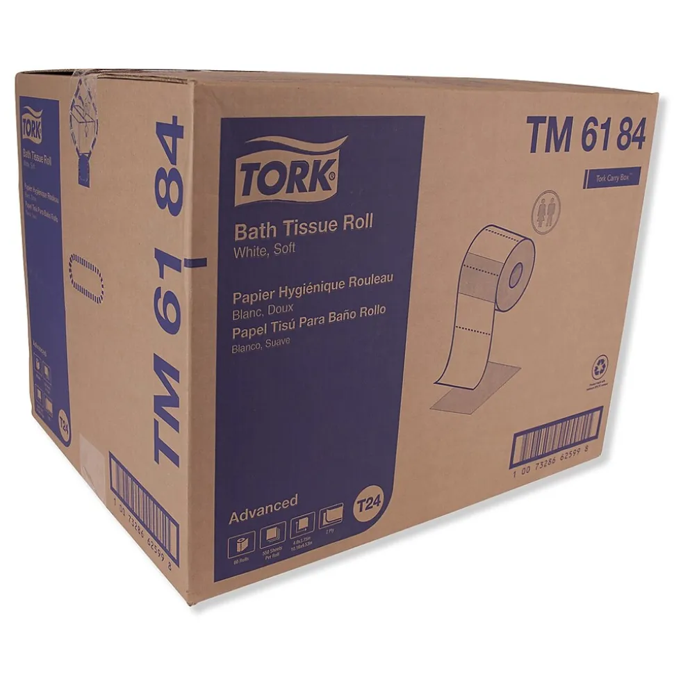 TorkĀ® Advanced Bath Tissue is a soft and absorbent bath tissue which tells the user that you care about their comfort. Handsomely embossed, it enhances bulk and softness. Easy start tail seal to prevent waste. Each roll is elegantly wrapped ensuring sanitary protection while delivering quality, value, and performance. Tork toilet paper has rapid breakup, ideal for all plumbing systems. All Tork bath tissue products are safe for septic systems. Available in an Easy HandlingĀ® carry box.