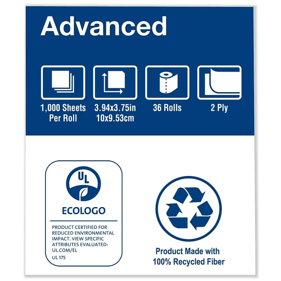 TorkĀ® Advanced High Capacity Bath Tissue has twice the capacity for fewer restroom maintenance intervals and reduced risk of product run-outs for improved patron satisfaction. Provides hygienic dispensing while reducing waste and maintenance expense. This tissue is ideal for low to medium traffic washrooms with a high focus on guest satisfaction. Tork toilet paper has rapid breakup, ideal for all plumbing systems. All Tork bath tissue products are safe for septic systems.