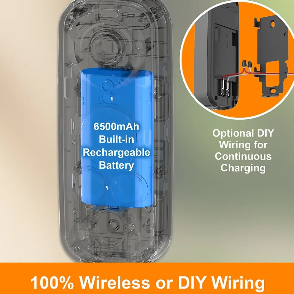- 6500mAh built-in battery-powered doorbell camera allows wire-free easy installation and setup optional trickle charge for continuous power