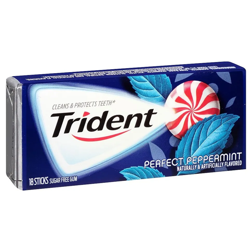 Freshen your breath with the refreshing minty flavor of this Trident Perfect Peppermint Gum. This 12-Pack has more than enough cooling and sweet gum packs to keep in your car, pocketbook, desk drawer, or at home. Grab a pack of this Sugar-Free Trident Perfect Peppermint Gum and chew the gum that’s bursting with delicious mint flavor. Clean and freshen your break with this great tasting gum!