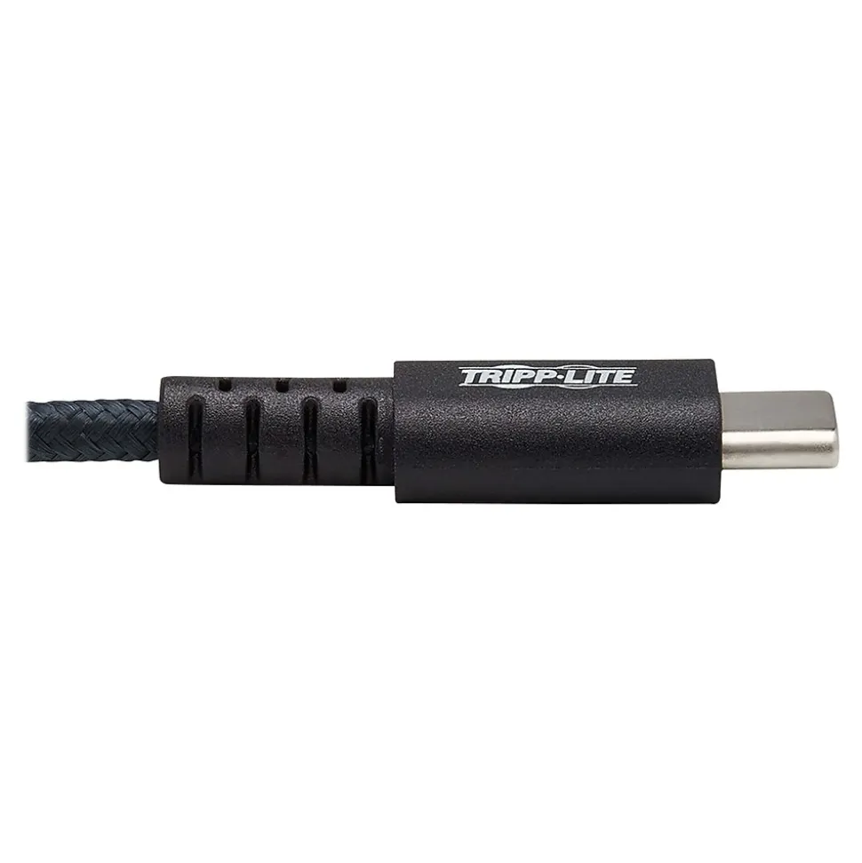 This heavy-duty USB sync/charge cable (M/M) connects your smartphone, tablet, MacBook, Ultrabook, Chromebook or other USB-C device to the USB-A port on a computer, car charger or wall charger. It allows you to charge and power your USB-C device, while simultaneously synching and transferring data at USB 2.0 data transfer speeds up to 480 Mbps. The cable is backward compatible with previous USB generations, allowing you to use it with older equipment. Charging cables used with mobile devices are often pulled, strained and generally abused, sometimes to the point of failure. To counter the stress of daily abuse, the super-robust U038-010-GY-MAX is constructed using UHMWPE and Aramid fiber to reinforce the conductors inside the cable. The double-braided nylon jacket helps maintain top performance and long life, while the enhanced UHMWPE and Aramid protection stands up to the strain of rigorous and frequent use. Integral strain relief gives the cable extra flexibility, reduces stress, and helps the cable move freely without cracking or breaking loose from the connector. Unlike traditional USB cables that connect in only one direction, the reversible USB-C male connector plugs into a USB-C or Thunderbolt 3 port in either direction for a fumble-free connection every time. The cord’s 10-foot length allows you flexibility in placing your device with respect to the connected computer or charger.