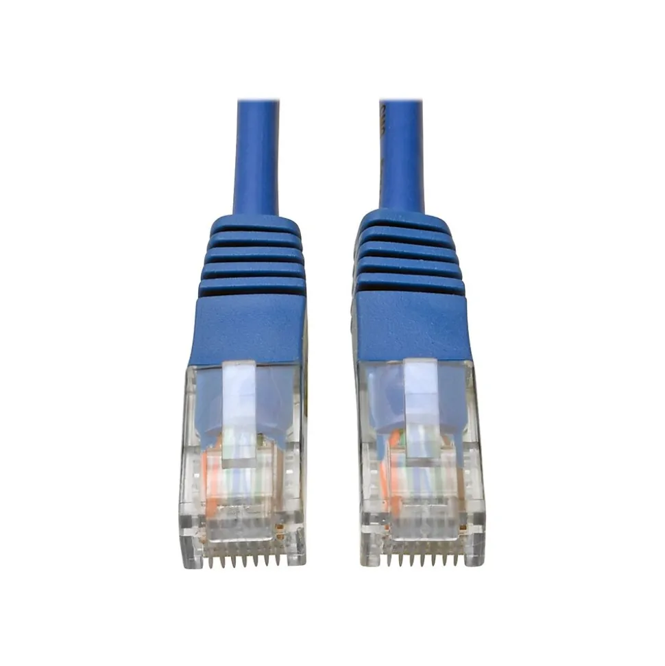 Experience rapid network communication with this RJ45 male network patch cable. The molded connectors feature integral strain relief, protecting the connectors from damage. Made with PVC 4-pair stranded UTP cabling, this Tripp Lite Ethernet cable delivers speeds up to 1Gbps at 350MHz.