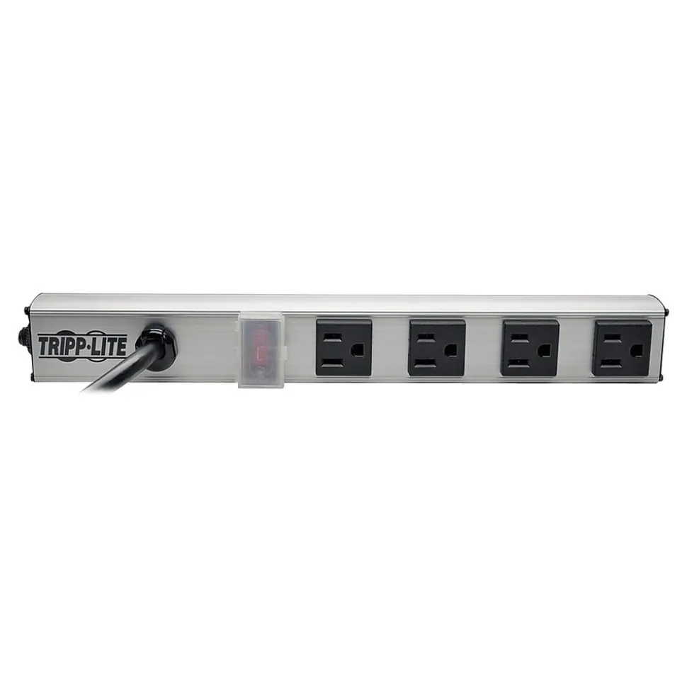 Use this power strip in your office or shop to connect multiple devices to a single electrical outlet. The heavy-duty metal case houses four grounded outlets protected by a resettable 15-amp circuit breaker, while a lit on/off switch provides control over the power flow. With a 10-foot power cord, this Tripp Lite power strip safely extends power to where you need it.