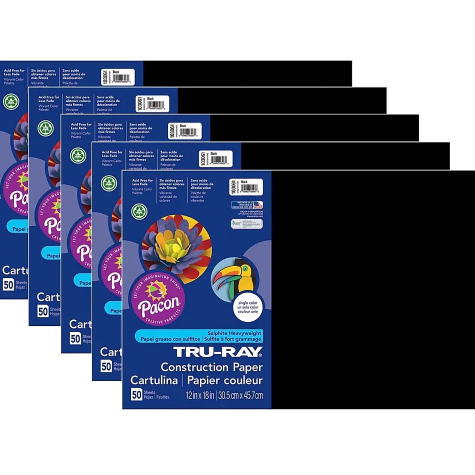 Heavyweight 100% vat-dyed sulphite with longer, stronger fibers. Tru-Ray® Construction Paper is tough enough to take scoring, folding and curling without cracking and tearing. Its superior fade-resistance keeps projects brighter and fresher longer. Each pack includes 50 sheets. Each sheet measures 12″ x 18″. Sold as a set of 5 packs, 250 sheets total.