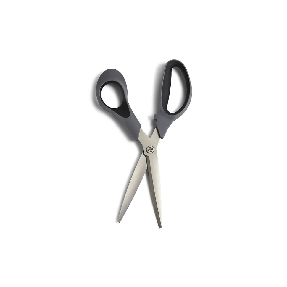 TRU RED™ 8-inch straight-handle scissors have an innovative 3-D curved blade to maintain sharpness and provide precise cuts each and every time. The titanium coating adds durability to blade strength and sharpness, giving a consistent cut over time. The ergonomic soft-touch handles is ideal for right-handed cutters making these a great tool for the office.