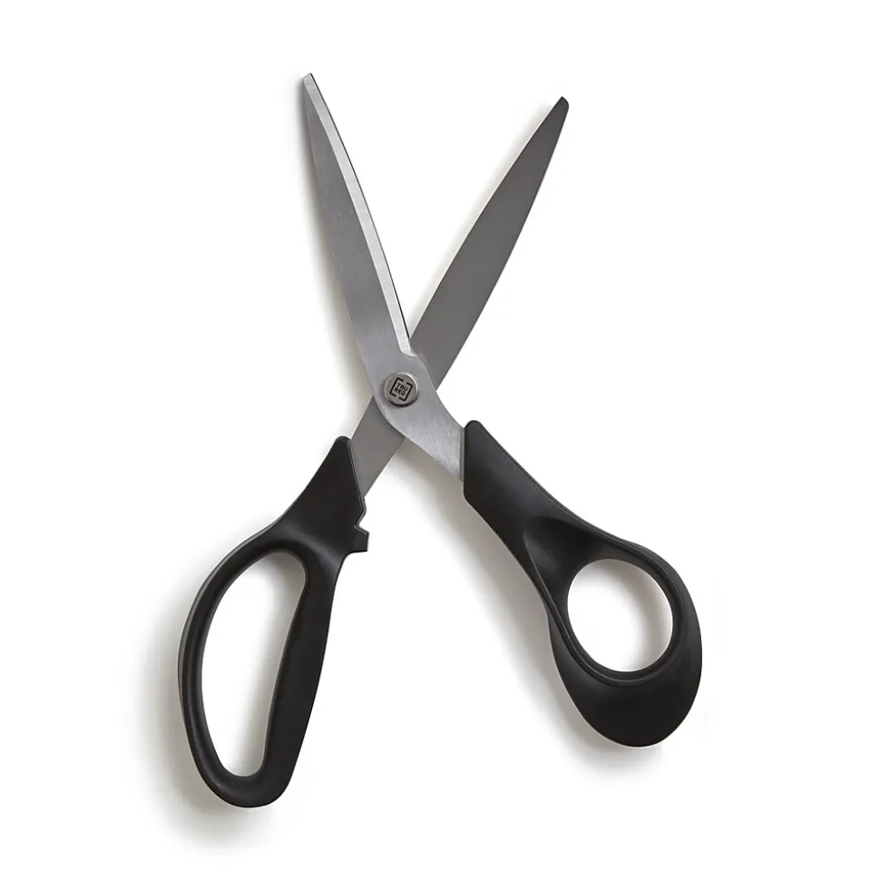 Bring beautiful lines and clean edges to documents, pictures and creative projects with these scissors. The bent handles feature an ergonomic design for added comfort, while the bent blades keep materials flat for more accurate results. Featuring durable construction, these TRU RED™ 8-inch stainless steel scissors are created for long-lasting use.