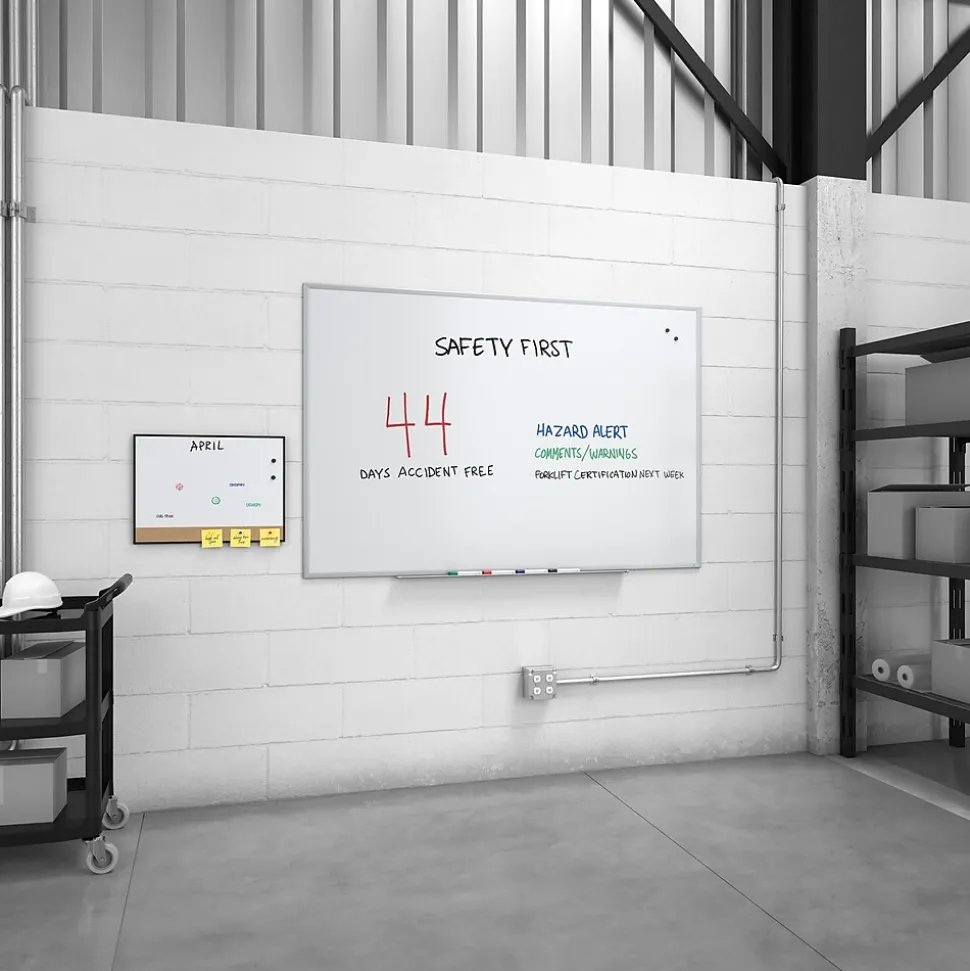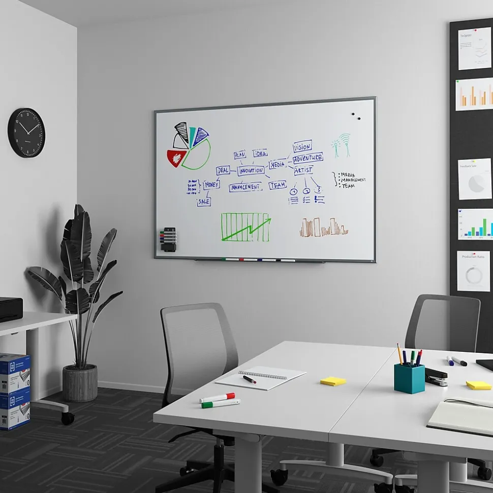 - 6′ x 4′ durable dry-erase surface with aluminum frame
