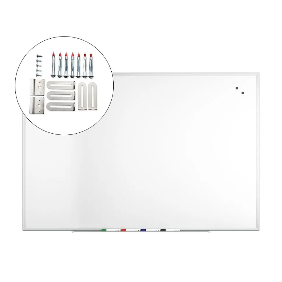- Includes whiteboard, mounting kit, accessory tray, and 4/pack of TRU RED™ assorted chisel tip dry erase markers