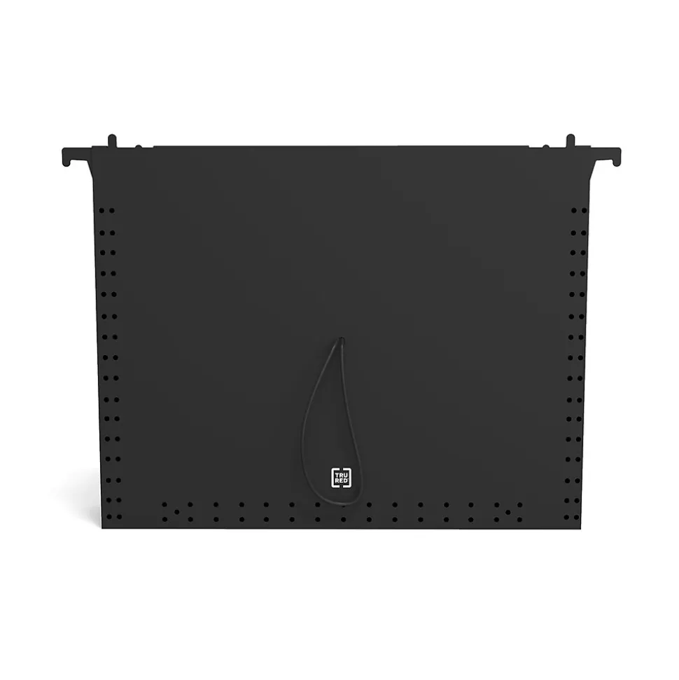 Protect papers with this hanging file folder. The seven pockets offer support for further categorization options, while top tabs provide adequate space for labeling and help you locate projects easily. An expandable spine creates extra room for larger files. This TRU RED letter-size black poly hanging file folder features a distinct color to help color-code your records by the client or subject.