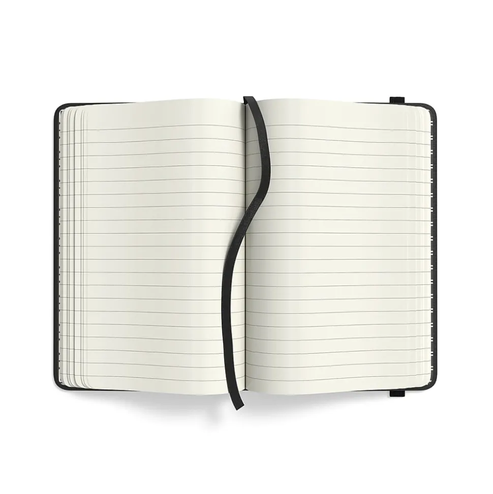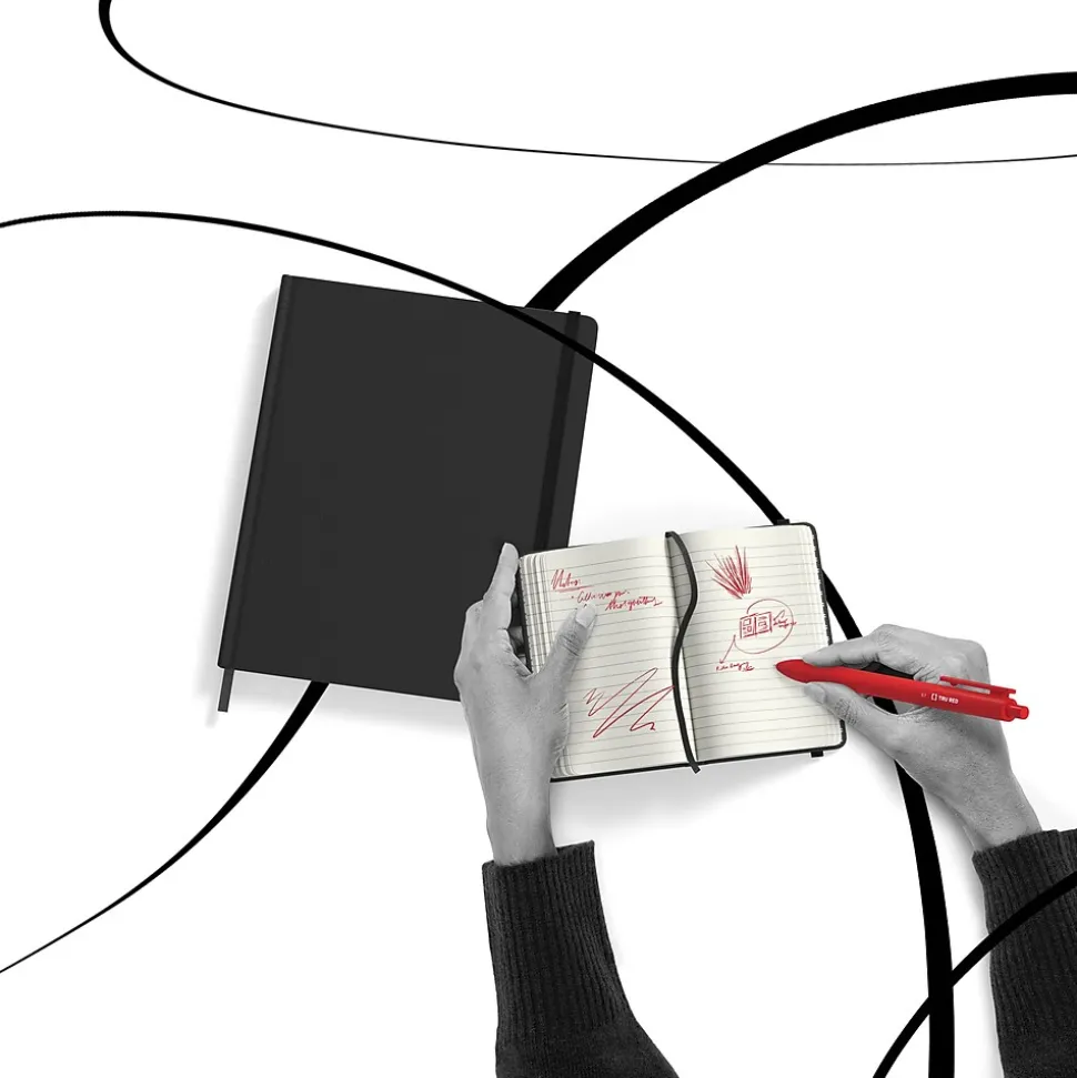 Flexible hard cover and small size create a durable journal you can bring everywhere. This TRU RED™ black hardcover narrow-ruled journal provides one page marker for immediate resumption of work wherever you last left off.