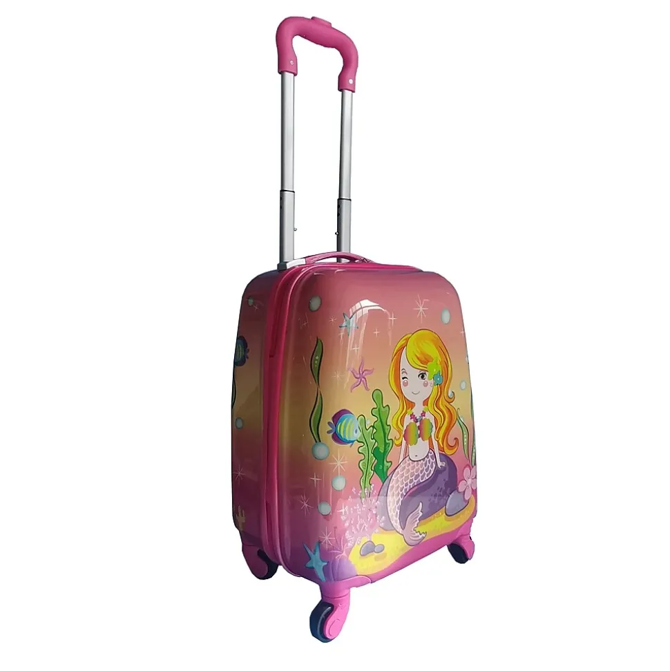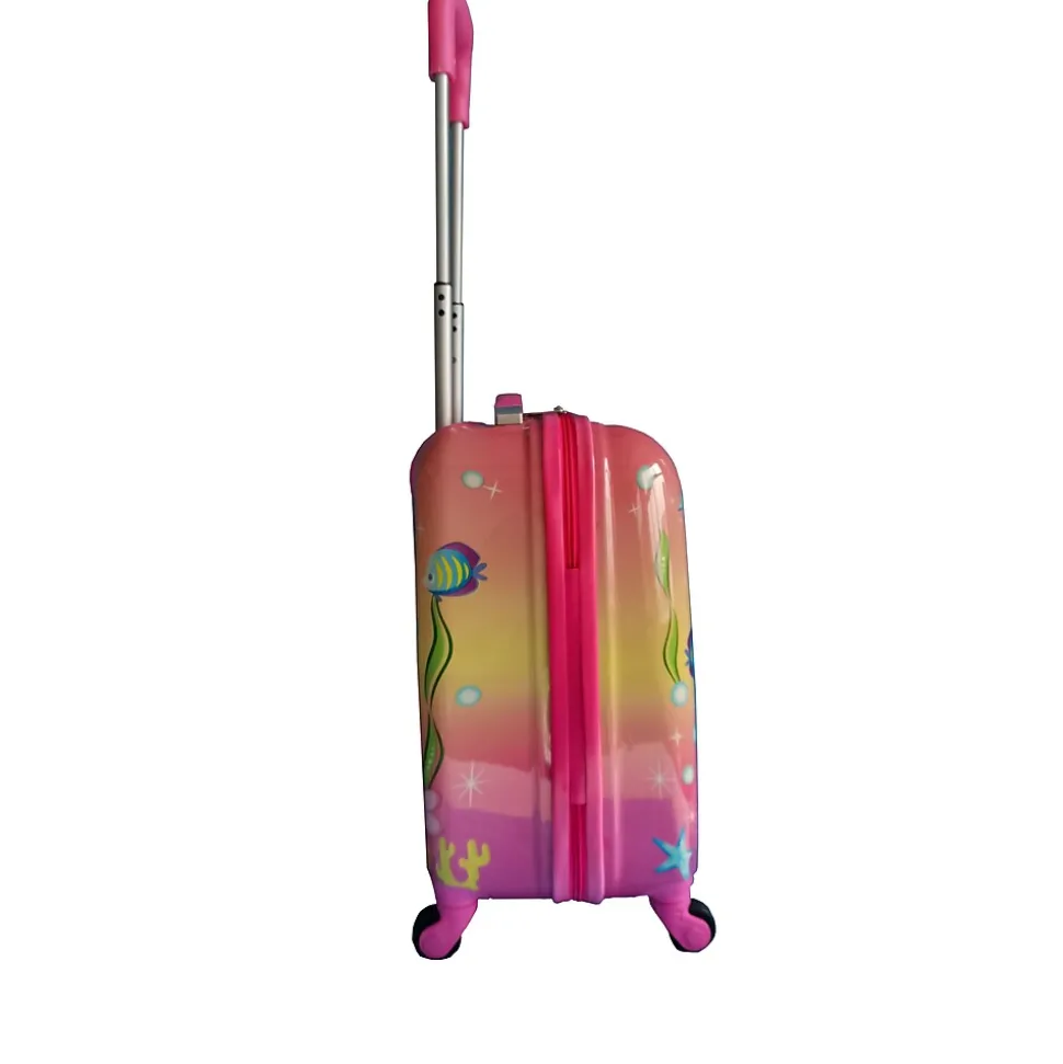 The Tucci Goldymerm Kids Luggage in Pink (T0392) combines whimsy and practicality, perfect for your child’s travel needs. Adorned with a delightful mermaid design and a shimmering gold accent, this luggage brings a splash of magic to every journey.