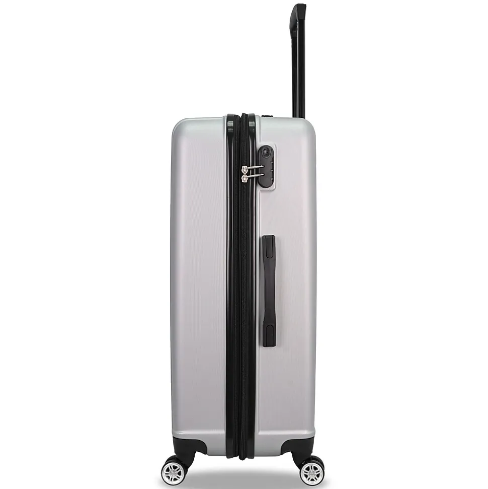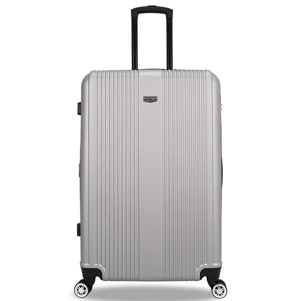 The Toscano Ottimo 2-Piece Luggage Set in Silver (S0536-02PC-SLV) offers a blend of modern style and dependable performance, making it a versatile choice for any traveler. This set includes a sleek carry-on and a spacious checked bag, each featuring a polished silver, scratch-resistant hard shell that combines elegance with durability.Constructed from lightweight yet sturdy materials, the Ottimo set ensures effortless mobility with 360-degree spinner wheels and an ergonomic telescoping handle for smooth handling. The interiors are thoughtfully designed, featuring Toscano’s signature deluxe lining, adjustable straps, and multiple compartments to keep belongings secure and organized. With a 2” expandable feature, this set provides additional packing space when needed, making it suitable for both short getaways and extended trips. The built-in combination lock adds an extra layer of security, while the soft handles offer comfortable grip.