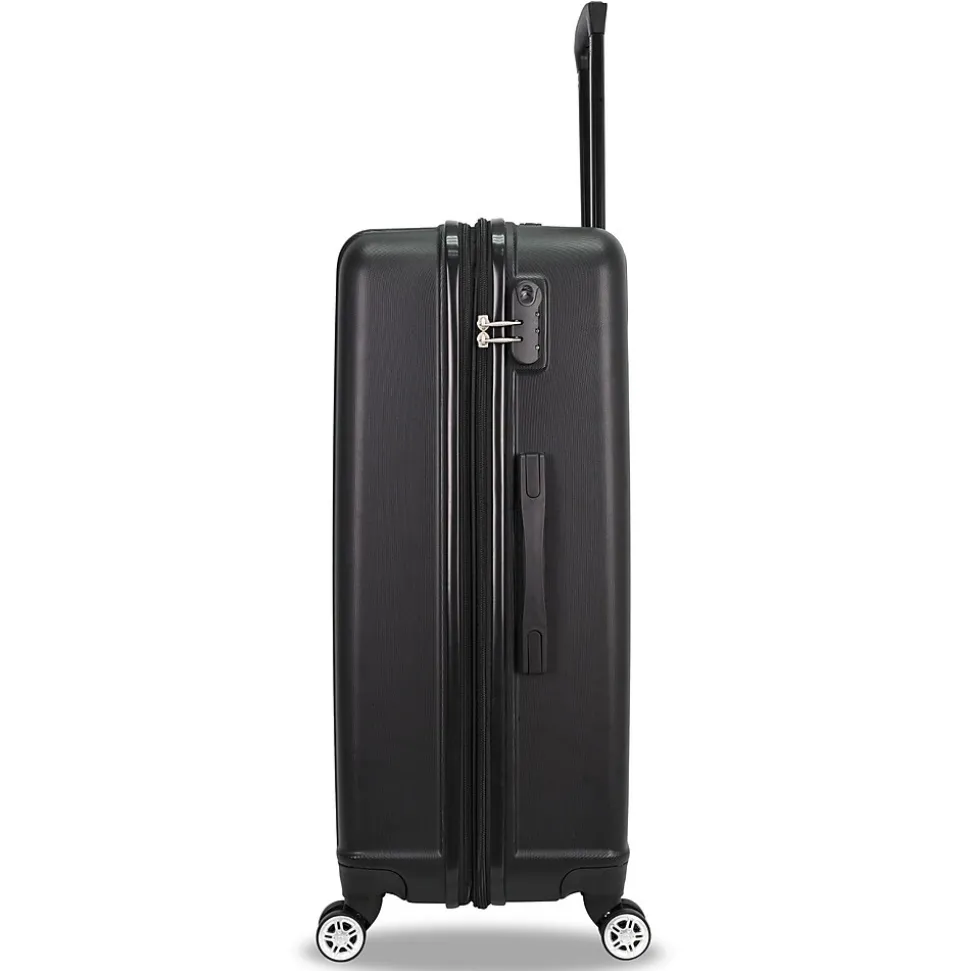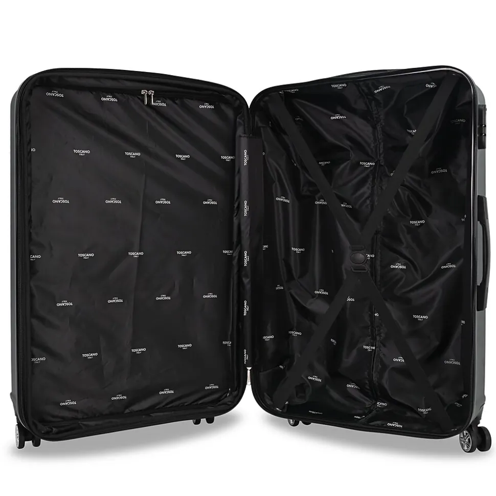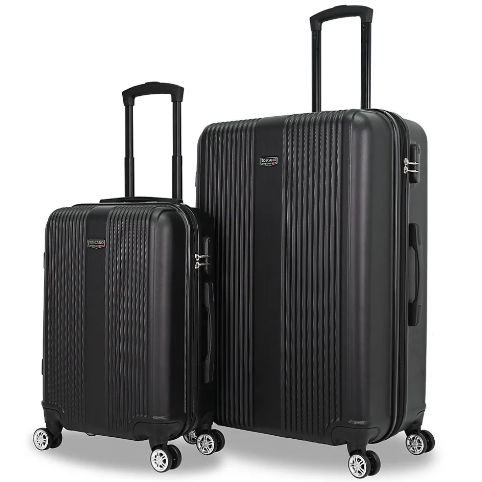 The Toscano Ottimo 2-Piece Luggage Set in Black (S0536-02PC-BLK) combines sleek design with reliable performance, making it a perfect travel companion. This set includes a compact carry-on and a spacious checked bag, each featuring a classic black, scratch-resistant hard shell that offers both durability and a refined look.Crafted from lightweight yet sturdy materials, the Ottimo set is designed for easy handling with 360-degree spinner wheels and an ergonomic telescoping handle, providing smooth, 360-degree mobility. The interiors are well-organized, featuring Toscano’s signature lining, adjustable straps, and multiple compartments to keep your belongings secure and tidy. The 2” expandable feature offers additional packing capacity, making it versatile for both short trips and longer journeys. Additionally, the built-in combination lock ensures added security for your belongings.