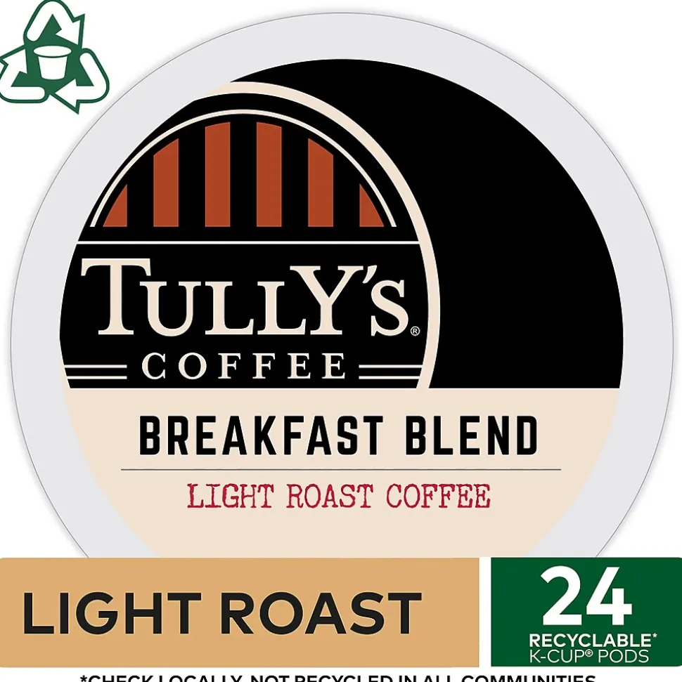Brighten each morning with these Breakfast Blend coffee pods. Featuring flavorful touches of citrus mixed with a mellow light-roast flavor, these coffee pods offer a delicious cup to get you up and going. These Keurig K-Cup Tully’s Breakfast Blend coffee pods are made from 100 percent Arabica coffee and come with 24 to a pack, so you can easily restock your home or breakroom.