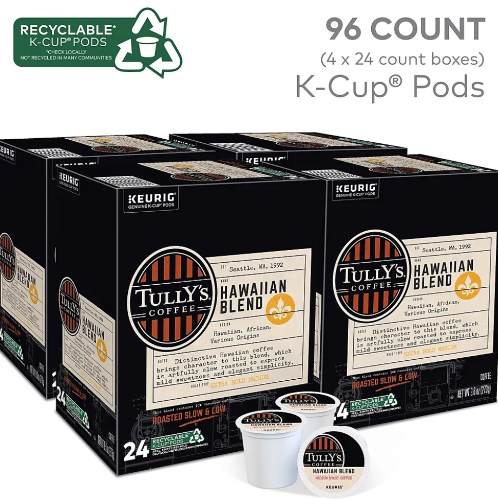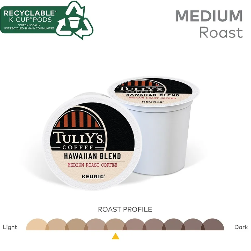 Take a moment each morning to enjoy the mildly sweet and simple taste of this Tully’s Coffee Hawaiian Blend coffee. Each cup fills the room with a delightful, invigorating aroma, while the caffeine provides a jump-start to the morning. These Keurig K-Cup Tully’s Coffee Hawaiian Blend coffee pods make it easy to brew a single cup at a time.