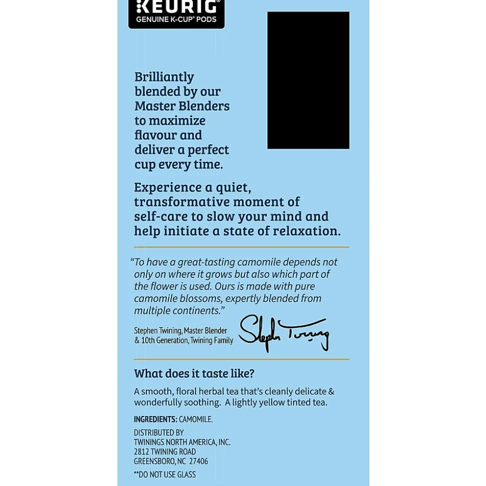 100% Natural Ingredients. A relaxing herbal tea expertly blended using only 100% pure chamomile blossoms to deliver a soothing tea with a soft, floral aroma and smooth taste.