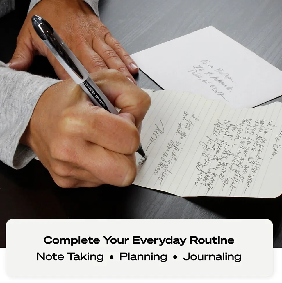 Write with the precision and ease of a fountain pen without the mess by using this micro-point pen. The fade-resistant and water-resistant ink is formulated to stop document alteration, and it’s airplane-safe, so it doesn’t leak due to cabin pressure changes. This package of uni-ball Vision Elite pens has eight assorted colors.