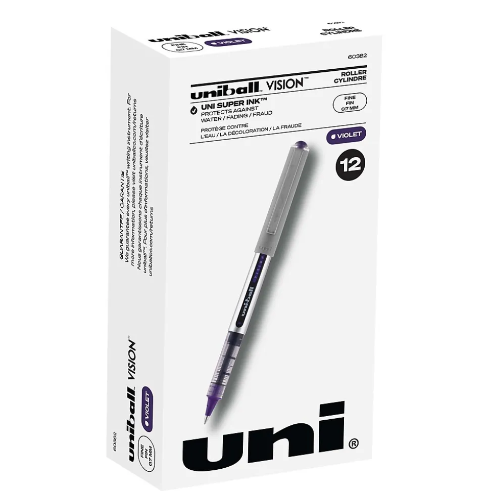 uni-ball Vision Rollerball Pens, Fine Point, Purple Ink, Dozen (SAN60382)