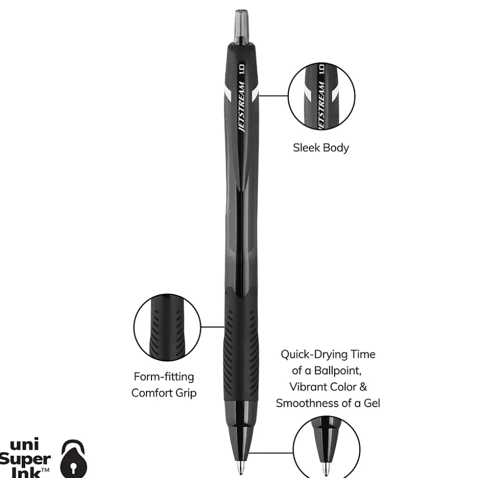 Inspire creativity with Jetstream Elements Ballpoint Pens from uniball with a 1.0mm medium point. Available in a wide assortment of colorful ink options, these pens feature an innovative hybrid ink that combines the quick-drying properties of a ballpoint with the smoothness and vibrancy of a gel pen. Whether it’s color-coding notes and lists or uniquely embellishing fun and creative writing projects, these JETSTREAM ELEMENTS ballpoint pens are suitable for a variety of projects. A contoured grip ensures greater comfort for extended writing and creating. uni Super Ink technology forms a strong bond with the paper, protecting your work from water, fading and fraud. You are simply left with exceptionally smooth and crisp lines. JETSTREAM ELEMENTS ballpoint pens give all of your ideas a burst of brilliant color.