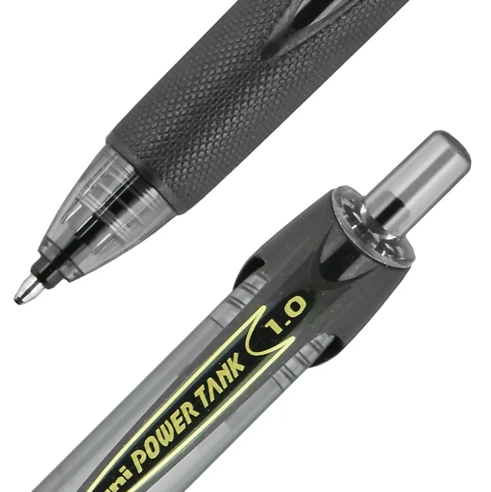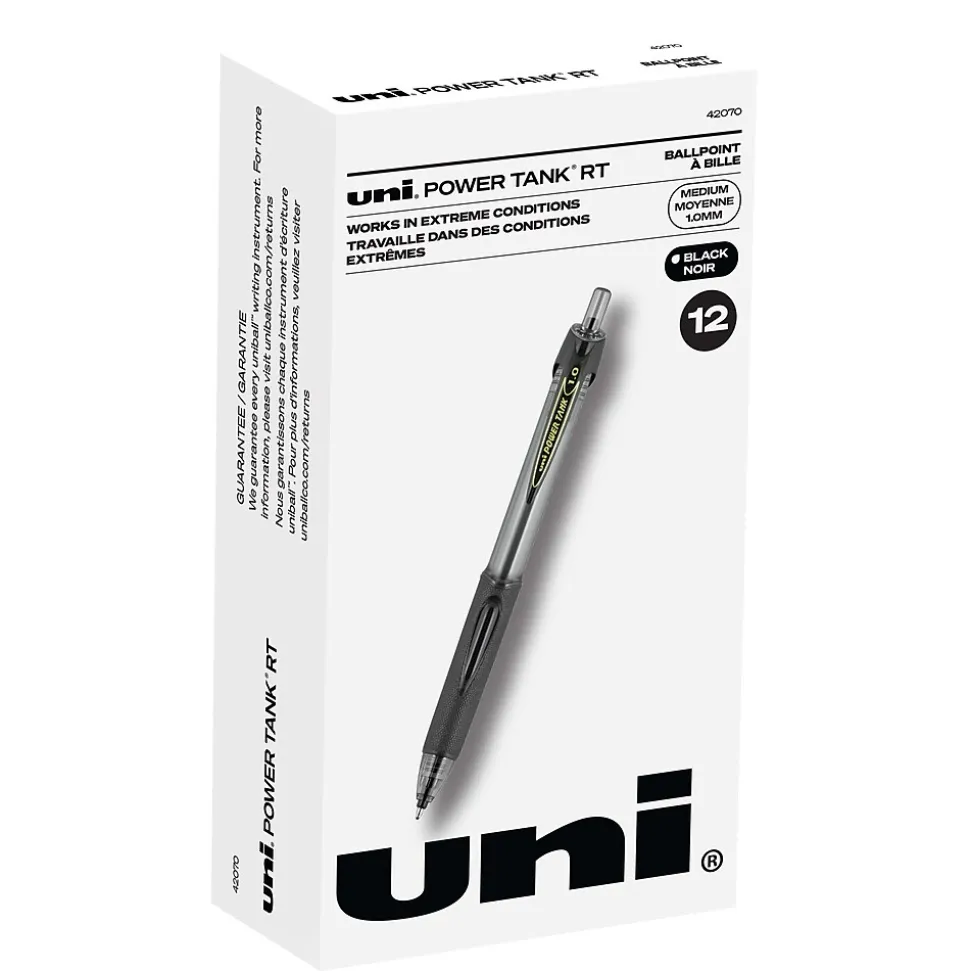 Write effectively in the toughest conditions with Power Tank Retractable Ballpoint Pens from uniball featuring a 1.0mm medium point. Designed to perform optimally in extreme conditions, the pens feature a pressurized ink cartridge that offers fast and clean writing even on damp surfaces, in bitterly cold conditions or at unusual angles, including upside down. The refillable ballpoint pens come with a textured rubber grip that encourages greater writing comfort. uni Super Inkâ„¢ has pigmented particles that create an Incredible bond with the paper, helping you create fraud, fade and water resistant documents even in harsh environments. The 1.0mm medium point offers bold strokes with a rich color payoff for clear writing. When you need a rugged writing tool, this refillable ballpoint click pen is the best choice in any hemisphere.