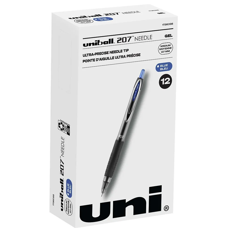Stock your office, home or classroom with 207 Needle Retractable Gel Pens from uniball featuring a 0.7mm medium point. These needle point pens are designed with a bend resistant tip for better accuracy. Even-flowing, pigment-based gel ink delivers a smooth writing experience for intense, vibrant lines, ensuring that every mark is brilliantly communicated. Use these retractable gel pens for everyday writing tasks, check signing and all of your important signatures, trusting its quick-drying uni Super Ink. Innovative uni Super Ink technology effectively entraps the gel ink into the paper, producing fraud, fade and water-resistant documents that resist check washing or bleaching. The 0.7mm medium needle point allows you to create ultra-precise, straight edge lines with ease. A textured grip offers greater comfort and control as you continue writing, while a translucent ink window indicates the level of gel ink remaining, so you don’t run out unexpectedly. The sleek design of the 207 with modern metal accents gives the retractable gel pen a stylish touch.