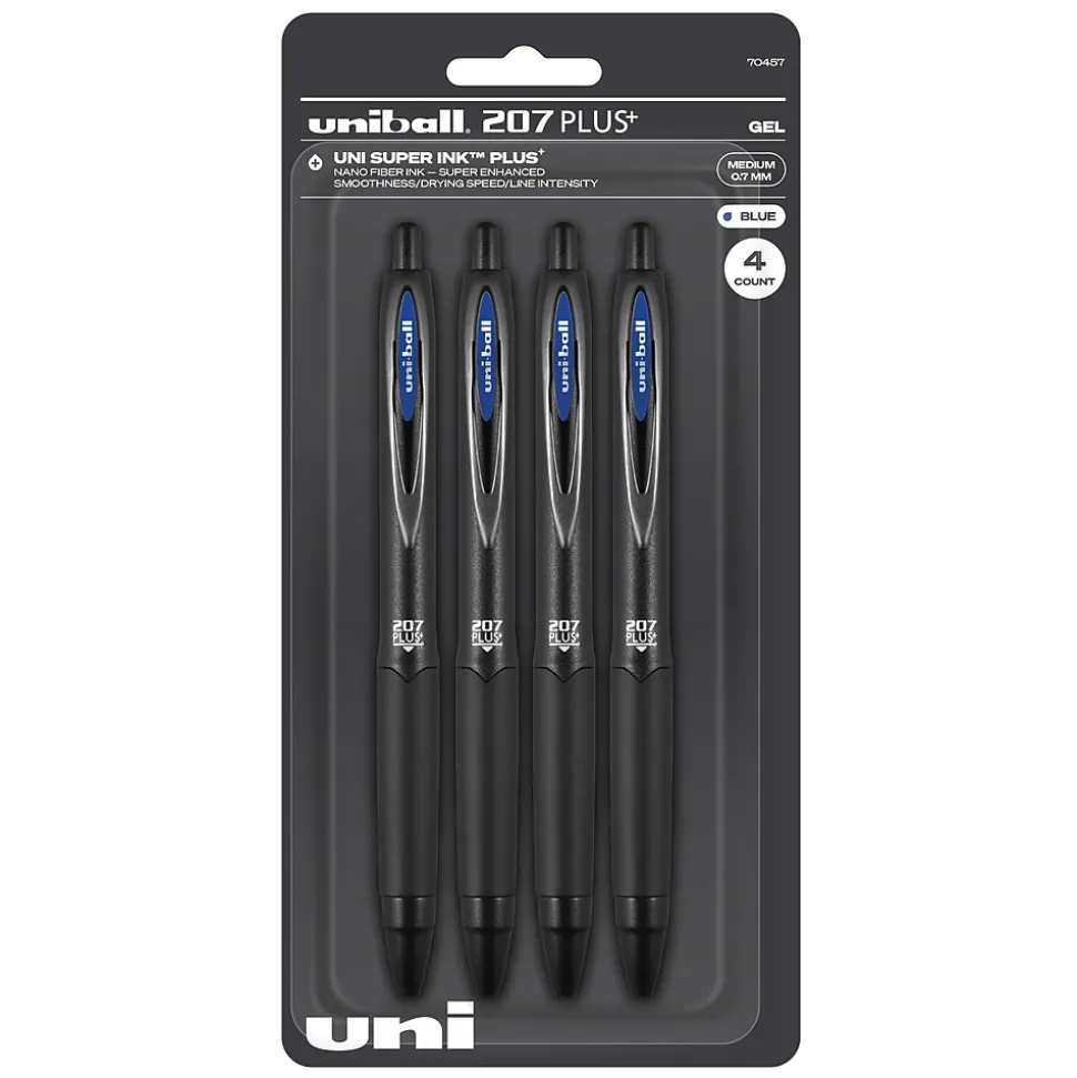 Take your writing to new heights with the 207 Plus+ retractable gel pen from uniball, featuring a 0.7mm medium point that products rich, clean lines. Advanced gel ink produces an enhanced writing experience with exceptional smoothness, drying speed and line intensity, ensuring that every word stands out. Superior gel ink resists smudging and smearing, making this retractable gel pen perfect for everyday writing tasks, jotting down notes and signing all of your important documents. The medium-point pen features uniball Super Ink Plus+, entrapping the gel ink into the paper, producing fraud-, fade-, and water-resistant documents that resist check washing or bleaching. The seamless rubber grip provides a comfortable hold that helps you complete long writing projects with precise control. Refine your style with the sophisticated profile of uniball’s 207 Plus+.