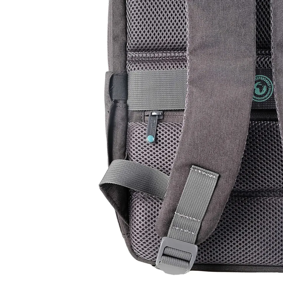 The GREENEE Dual-Compartment Backpack for 15.6-In. laptop computers from Urban Factory has a high-density, foam-reinforced compartment for a laptop computer up to 15.6 in. A second compartment is for your accessories and personal items for excellent load capacity. The GREENEE features a front flat pocket and 2 expandable side pockets for lots of space and quick access to an umbrella or bottle. The water-repellent material and robust design will make this backpack your best day-to-day ally. It is made of r-PET, a material resulting from the recycling of plastic bottles, in order to preserve our environment as much as possible.