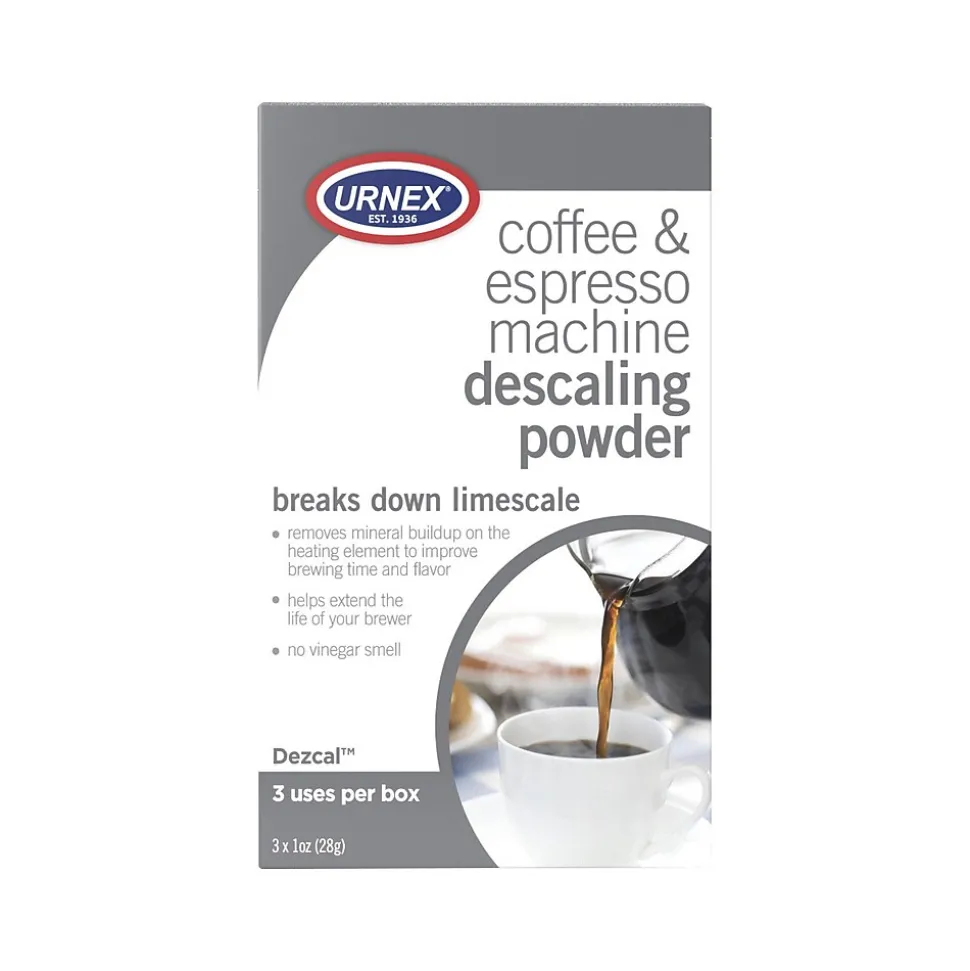 - Descaling powder removes mineral scale that builds up on the heating element of every coffee maker