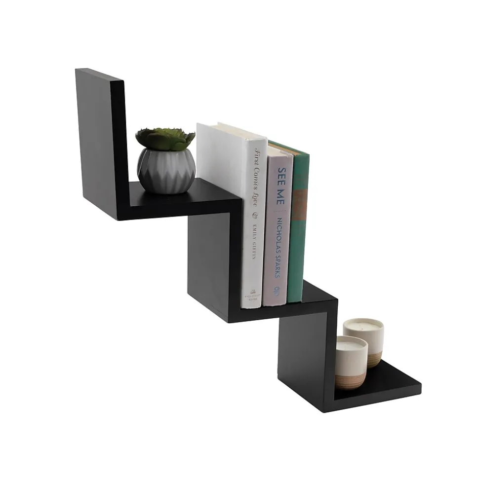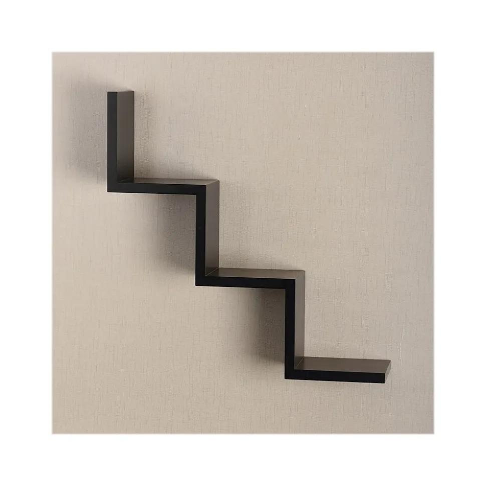 Showcase cherished photos, keepsakes, and other decorative items on this functional and attractive shelving solution by V-Light. Includes one ladder-style floating wall unit with three display shelves measuring 5.75″ x 5.75″ each. It features a timeless black finish to complement virtually any home or office decor. Included installation hardware makes for easy wall mounting, with no visible wiring or hardware connections.
