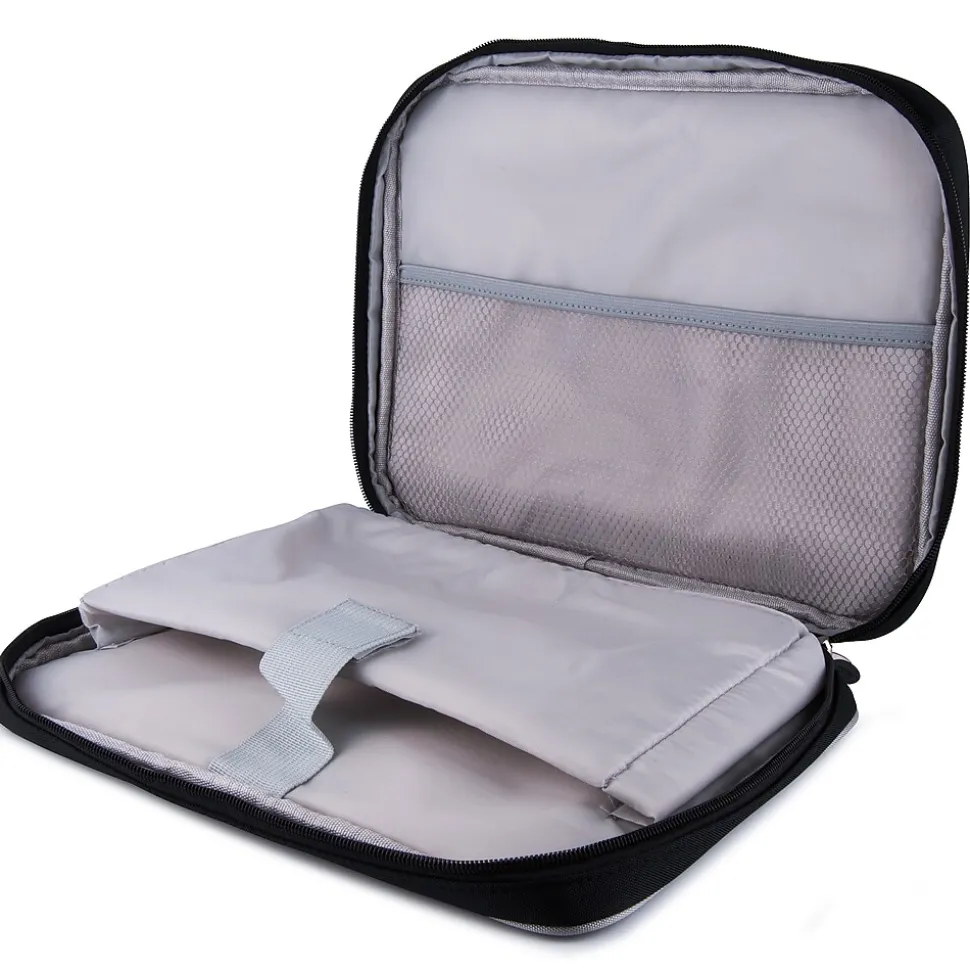 - Compact and durable with padded shoulder strap and top handles