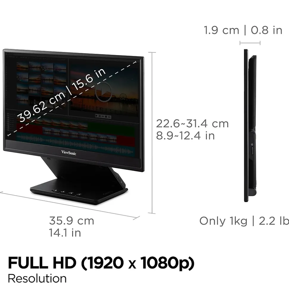 - SMALL AND COMPACT: With a weight of 2 lbs. and a thickness of 0.8 in, this 15.6 inch portable monitor slips easily into backpacks and purses