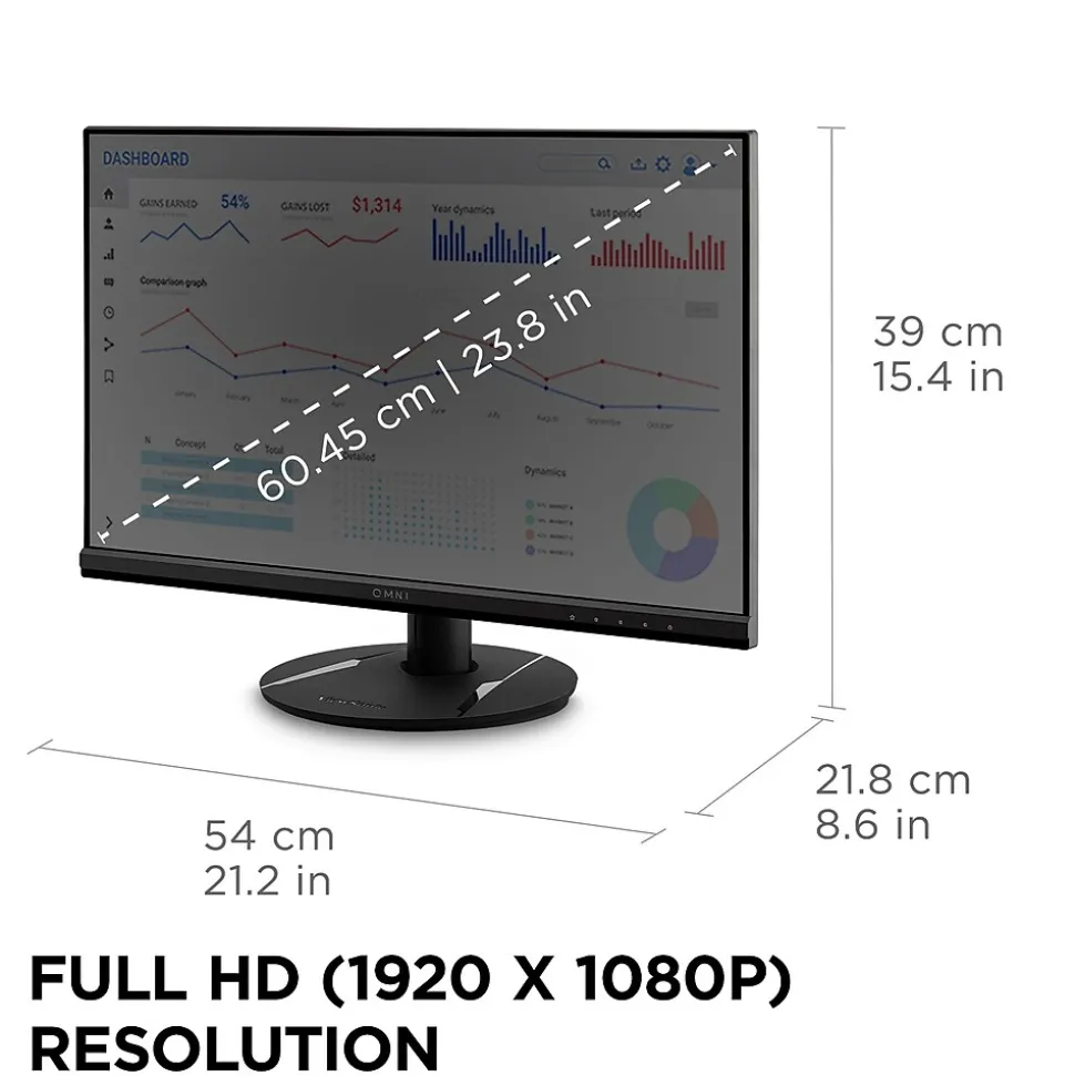 | Monitor Screen Size in Inches Monitor resolution measures the screen’s number of pixels arranged horizontally and vertically. For example, a resolution of 1920 x 1200 means there are 1920 pixels horizontally times 1200 pixels vertically. The higher the resolution, the higher the quality and sharpness of the image on screen. | 1920 x 1080 |