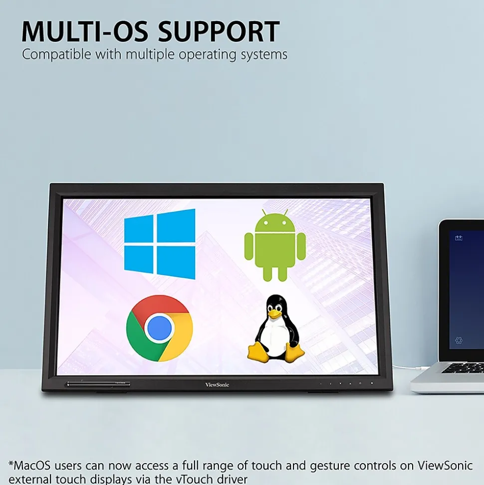 - MULTI-TOUCH FOR MAC: MacOS users can access touch and gesture controls on touch displays connected to their Apple devices using ViewSonic’s vTouch driver. Not available for iPhone and iPad